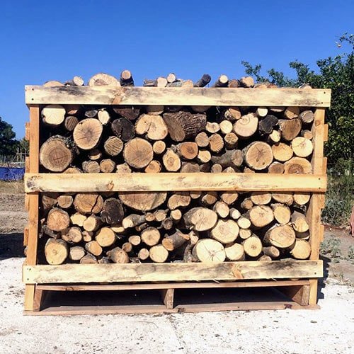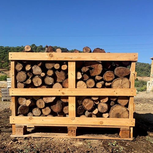 Palet de 1 m³ de leña de roble de alta calidad, secada durante al menos 9 meses para una combustión óptima